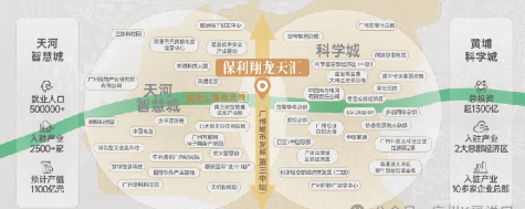坐落在广州第三发展中轴线“科技创新轴”的保利翔龙天汇,位于天河智慧城和黄埔科学城双城交汇之处。这里不仅是广州市未来经济增长的重要引擎,也是集金融总部、人工智能、数字经济和智能制造于一体的创新高地。随着产业布局的成熟,预计该区域将承载超过1万亿元的GDP,成为广州经济发展的关键力量。