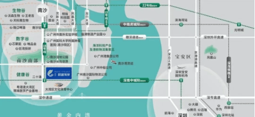 深中通道南沙线收费站:直线距离约1公里,驾车30分钟直达深圳前海;