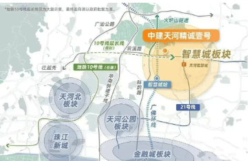 广州城市发展一路向东,重点聚焦智慧城。智慧城位于广州第三中轴,是融合高端居住与产业的宜居宜业新中心,也是粤港澳大湾区科技创新走廊的首要节点。作为广州 CTD(中央科创区),2021 年营收高达 1787 亿元,聚集 2800 多家高精尖科创企业,如小鹏、网易、酷狗、中国移动等头部企业,汇聚超 25 万高知高薪人才。中建天河精诚壹号位居智慧城芯,将尽享产业腾飞带来的发展红利。