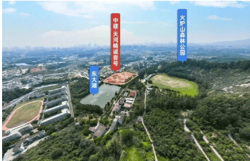 项目北靠 9000 亩火炉山森林公园,未来规划登山步道,归家即享 “森林氧吧”;东侧 30 米是 30000㎡原生态碧湖东大湖,南岸设置亲水公园及露营专区,打造天河难得的湖山胜境。