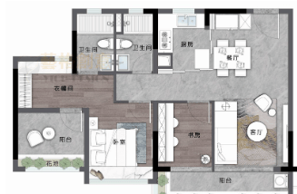 (二)约 89㎡ 3 + 1 房 2 厅 2 卫