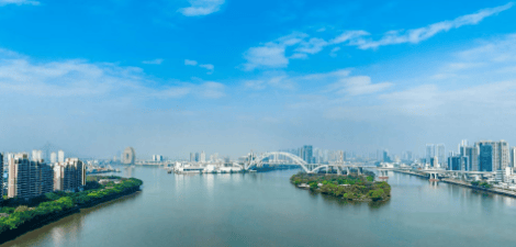 三江交汇:项目坐落在珠江后航道的三江交汇点,距离珠江仅约200米,提供了长约2400米的江景界面。