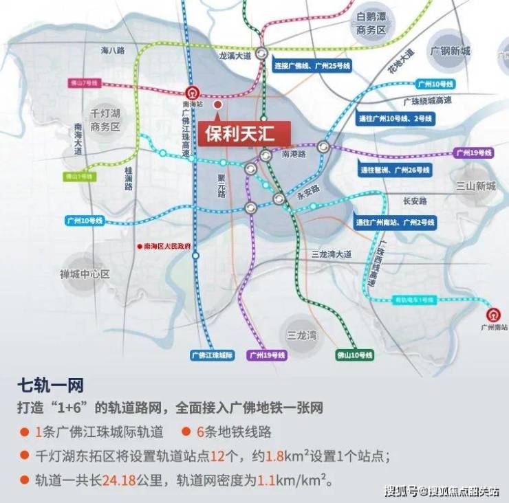 交通配套:保利天汇位于佛山一环东侧、海五路以南,地处金融高新区C区东拓板块,与广州荔湾直线距离仅2公里,距离保利天悦1.8公里,能够共享千灯湖板块交通、产业、公园等配套资源。