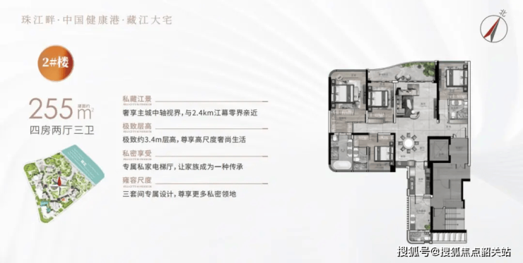 户型:建面约233-285㎡四至五房,东向/东南向一线望江,层高3.4-3.6米
