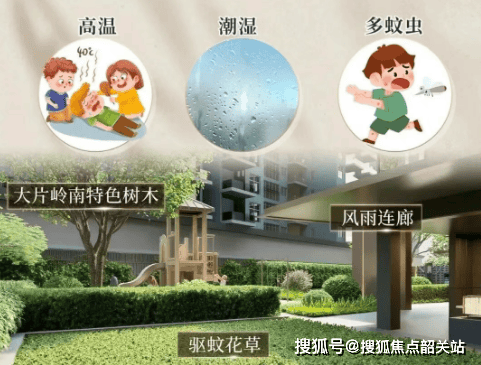 社区内部虽占地不大,但规划了立体绿化系统:首层架空作为泛会所,设有康体休闲区;屋顶打造共享花园;中央绿地约2000平方米,配有遮阳廊架、塑胶步道和休憩座椅。针对广州潮湿多雨的气候,小区还做了防潮架空、风雨连廊、高大乔木遮阴,并种植驱蚊植物,连地漏都考虑了防虫设计——这些细节,一看就是本地开发商对岭南生活的理解。