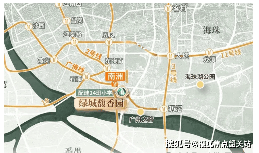 项目位处广佛线与 2 号线南洲站双地铁上盖,直线距离南洲站约 100 米,从南洲站 C1 口出来可直达海珠客运站附近。地铁出行便捷高效,3 站可达客村,5 站直达珠江新城,7 站至琶洲,8 站可通行万博、金融城、白鹅潭等核心商圈,满足日常通勤与出行需求。