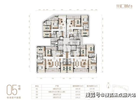 汇景台的产品涵盖了123-352平方米的三至五房户型,共八种不同类型的户型可供选择,实用率约为82%-84%。在外立面设计上,项目采用了陶板外墙与铝板幕墙相结合的方式,既美观又具有节能环保的特点。室内空间则通过弧形元素的应用,增强了流动感和细节美感,体现了对生活品质的极致追求。