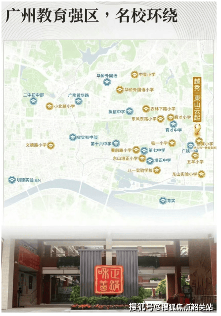 教育资源是越秀「東山云起」的一大亮点。小学对口已纳入铁一教育集团的杨箕小学,孩子在小学阶段就能共享集团优质教研资源,未来升学也有望向铁一中学倾斜。初中阶段,根据越秀区小升初电脑派位分组(第 5 组或第 6 组),对口初中均为传统名校。广东省实验中学作为全省顶尖公立初中,中考成绩常年名列前茅;铁一中学(越秀校区)重点率超 80%,是铁一集团核心校;培正中学作为百年名校,中考平均分稳居越秀前五,还有七中、十六中、十三中等优质学校可供选择。虽然入读初中需摇号,但组内学校实力都很强劲,且越秀区高中资源丰富,户籍生录取分数低于外区,为孩子的 12 年教育提供了坚实保障,让家长无需为子女教育担忧。