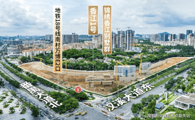 项目地处粤港澳大湾区地理核心、广州南CBD万博板块核心位置,是广州“南拓”战略核心承载区与城市新中轴南段关键节点。万博CBD作为广州四大CBD之一,是番禺区政治、经济、文化、商业中心,过去五年GDP增幅超40%,汇聚42万市场主体、万亿级产业集群,希音、小米、奥园集团等世界500强与独角兽企业总部云集,形成世界级总部经济集群,城市价值与发展潜力稳居广州前列。