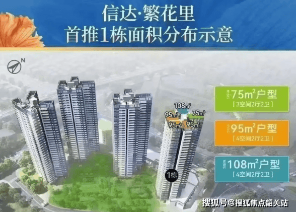 信达·繁花里提供多种户型选择,包括约75-108平方米的三至四房设计,主打高使用率,最高可达约120%。具体户型如下: