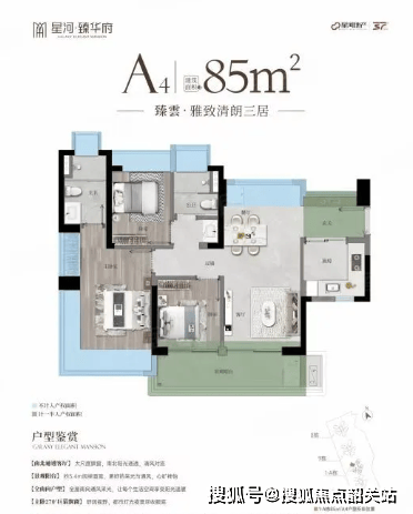 在产品设计方面,星河臻华府同样表现出色。项目主打新规户型,使用率达到约100%,比板块二手普遍高出20%。以建面约85㎡的三房为例,该户型南向无遮挡,三开间朝南,预留700库冰箱位,近28㎡LDK餐客厅,约5.9m宽景阳台,奢阔景观体验。而建面约125㎡的四房两厅三卫则堪称改善首选,板式独梯独户设计,南北双阳台通透对流,开放式中西厨,尽显大家之气,约6.7m宽瞰景阳台,多场景运用,延续生活空间,双套房行政级配置,带步入式衣帽间•奢适主卫。这些创新设计不仅提升了居住舒适度,也满足了不同家庭的需求。
