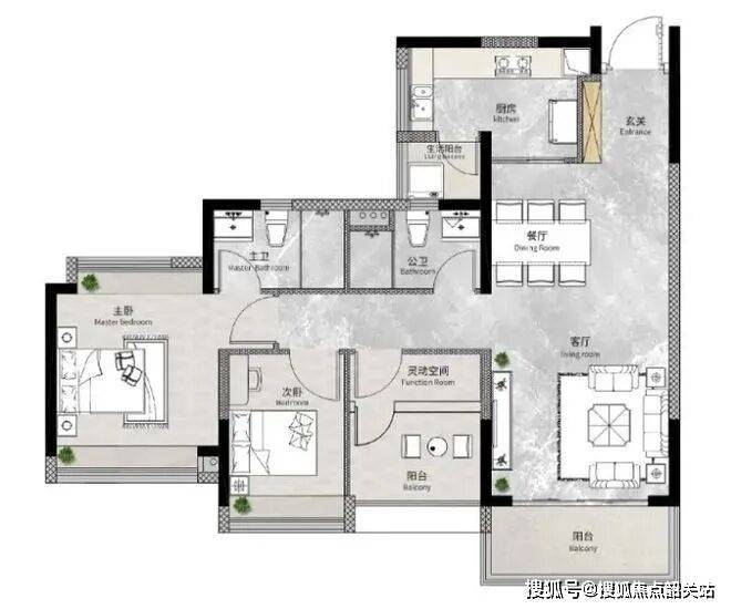 在户型布局与空间利用细节方面,花都城投·湖山雅筑提供了建面约94㎡至133㎡的全生命周期成长户型,重点解决了家庭不同阶段的空间需求变化。以建面约94㎡的三房户型为例,其采用了南向四开间设计,实现了约12.3米的宽屏采光面,确保了室内光线的充足。该户型的一体式双厅设计不仅提升了空间通透感,还保留了空间可变性,能够适应家庭聚会或休闲娱乐等多种场景。厨房采用U型布局,优化了料理动线,而主卧的双飘窗设计则巧妙增加了收纳潜力。对于改善型需求,建面约110㎡的四房户型提供了独立入户花园,营造出归家的仪式感,其南向四开间带来了约12.7米的观景视野,搭配约6.5米的双开间阳台,极大地拓展了生活与观景的边界。而建面约133㎡的舒居四房则进一步升级,拥有尺度玄关和超大方厅,主卧更配备了L型270°飘窗及独立衣帽间,这些具体的数据与设计细节,共同构成了项目高使用率的核心支撑。