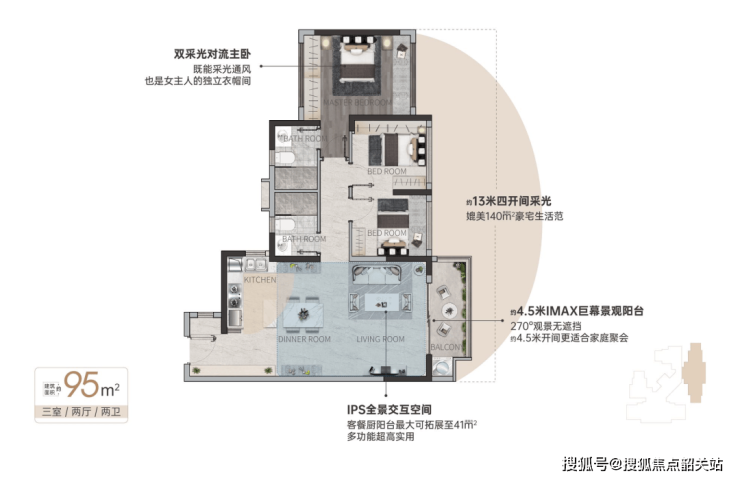 神户型2⃣ 95房4.5米超大客厅三房两卫
