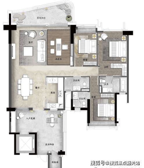 星级主卧套房:配备衣帽间及四分离卫生间,满足三代同堂居住需求。