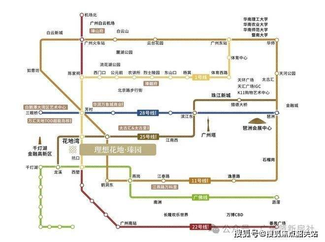 交通是项目的一大硬核优势。项目位于9条城市和城际轨道规划交汇处,未来交通网络相当密集。目前步行约800米就能到地铁1号线花地湾站,日常通勤已经很方便。未来多条线路兑现后,从这里出发去天河、越秀、海珠甚至佛山南海、肇庆方向都会更快捷。这样的轨道密度,在广州主城区核心地段非常少见,直接把项目嵌入了广佛都市圈的核心交通节点。