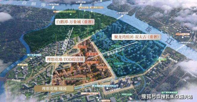 白鹅潭CBD是广州规划中的世界级五大商圈之一,定位为“产商住”一体的新城市中央商务区。核心区包括白鹅潭核心区、聚龙组团和花地湾组团,三者半径约2公里内形成珠江西岸的CAZ黄金三极。这里已经聚集了不少重量级产业和地标建筑,比如立白中心、阿里云创新中心、世界500强广药集团总部等企业纷纷落子。商业方面,万象城和双太古都在建设中,理想花地自身的城市级购物中心也在规划推进。文化配套同样亮眼,广东美术馆、广东非遗展示中心、广东文学馆“三馆合一”已经正式启用,距离项目直线约1.9公里,文化氛围直接拉满。