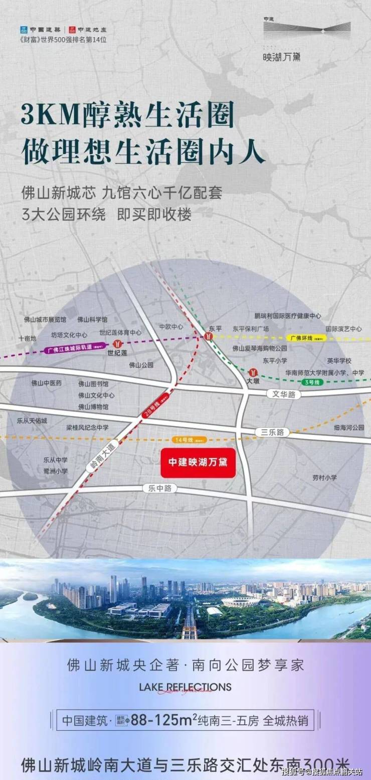 中建映湖万黛位于佛山市顺德区乐从镇,具体坐落于乐从三乐路与大罗大道交汇处东南300米。作为佛山新城与乐从板块交汇的核心位置,该项目以刚需住宅为主打,提供了约89-107㎡的纯南向三至四房户型,为年轻家庭和首次置业者提供了一个理想的居住选择。