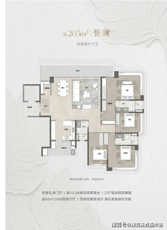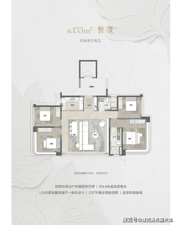 户型全面贯彻新规理念,强调空间效率与景观体验。建面约133㎡起步即四房,219㎡“江幕大宅”更配置约16米L型阳台,实现270°环幕观江,主卧北向直面无遮挡江景。所有户型采用板楼布局、全明设计,LDKB一体化公区提升家庭互动性。尽管部分户型为追求面宽而压缩局部功能区尺度(如餐厅进深略窄),但整体仍以“高使用率+大视野+精工精装”赢得市场认可。作为横沥岛少有的头排江景新规盘,能建·天誉府以“金融岛封面+一线江景+央企品质”三重价值,成为南沙终极改善不可忽视的选项。