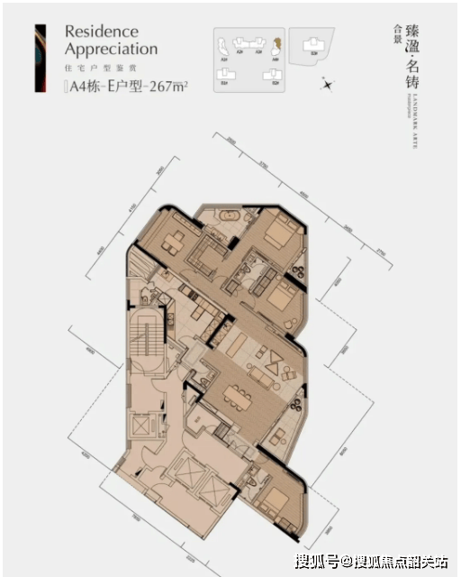 项目户型以大平层为主,涵盖 280-531㎡多种面积段,满足不同家庭的居住需求。其中商业大平层有 322 平四房两厅五卫和 403 平四房两厅五卫两种户型,住宅户型为 280-368㎡,所有户型均采用科学合理的布局设计,空间利用率高。