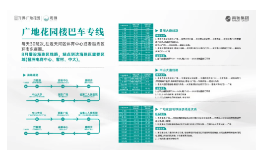 交通的便利性是衡量一个楼盘价值的重要因素之一。番禺万博·广地花园观灏周边交通网络发达。距离地铁7号线南村万博站约1.5公里,通过地铁可快速直达广州多个核心区域,无论是前往珠江新城上班,还是去广州南站出行,都十分便捷。此外,项目周边还有多条公交线路,如番145路、番186路等,为您的日常出行提供了更多选择。对于自驾出行的人来说,项目临近华南快速干线、新光快速路等城市主干道,能够快速通达全城,大大节省了出行时间。