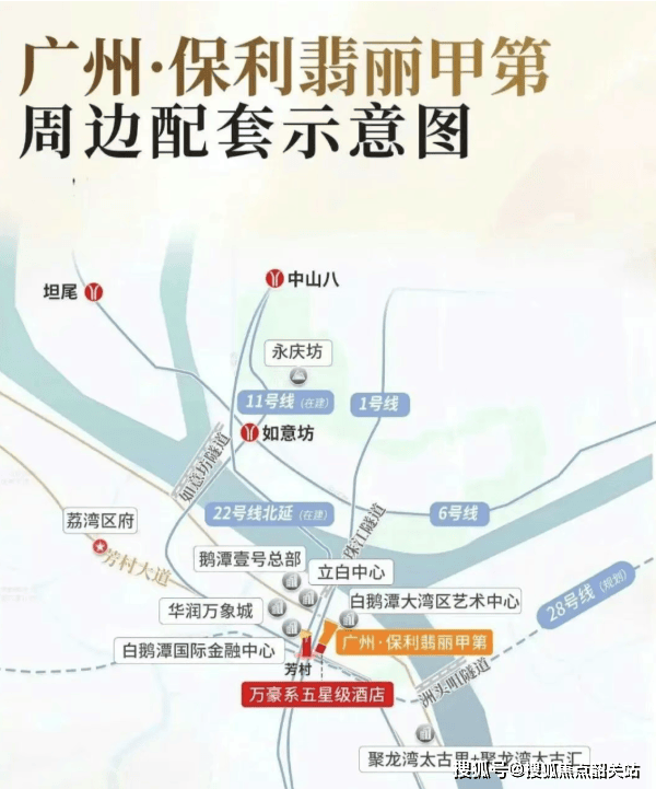 交通是城市的血脉,也是衡量地段价值的重要标尺。广州·保利翡丽甲第在交通配套上堪称完美。项目与地铁1号线芳村站仅约200米,步行即可到达。通过1号线,可以轻松换乘11号线,快速通达全城。更令人期待的是,未来这里还将汇聚22号线、28号线,形成“四线交汇”的超级枢纽。