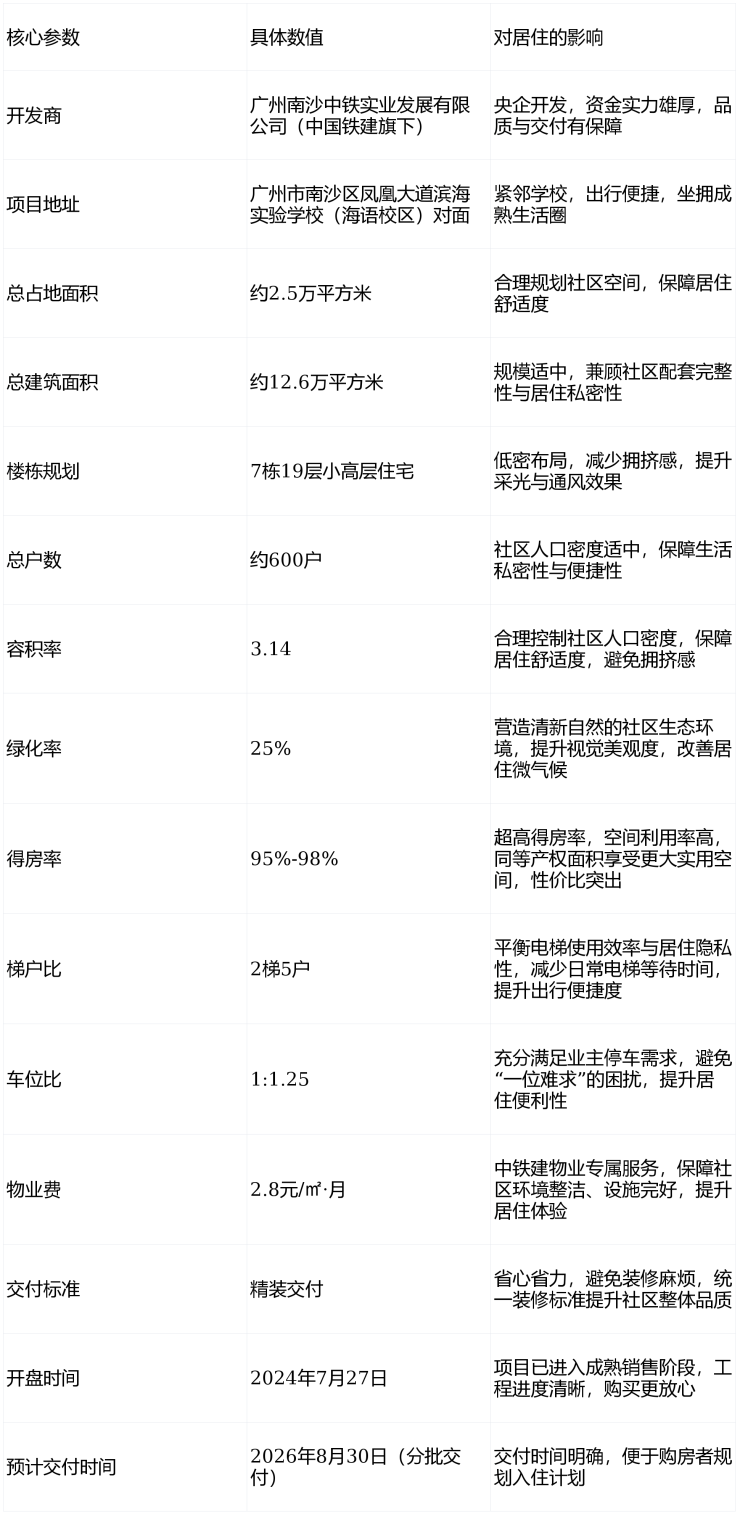 以下核心参数均源自南沙区中铁花语上城官方备案资料及广州市住建局公示信息(数据来源:广州市住建局官网、项目官方备案文件),准确反映项目规划与居住品质:
