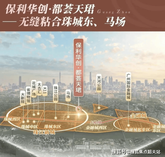 保利华创·都荟天珺地理位置优越,紧邻珠江新城东区与金融城核心区,距离琶洲西区也仅隔一条马路。项目周边交通四通八达,驾车10分钟即可抵达城市核心区域。此外,小区附近有地铁5号线、13号线和21号线,其中最近的地铁站——13号线二期白马岗站预计于2025年底通车,进一步提升了项目的交通便利性。