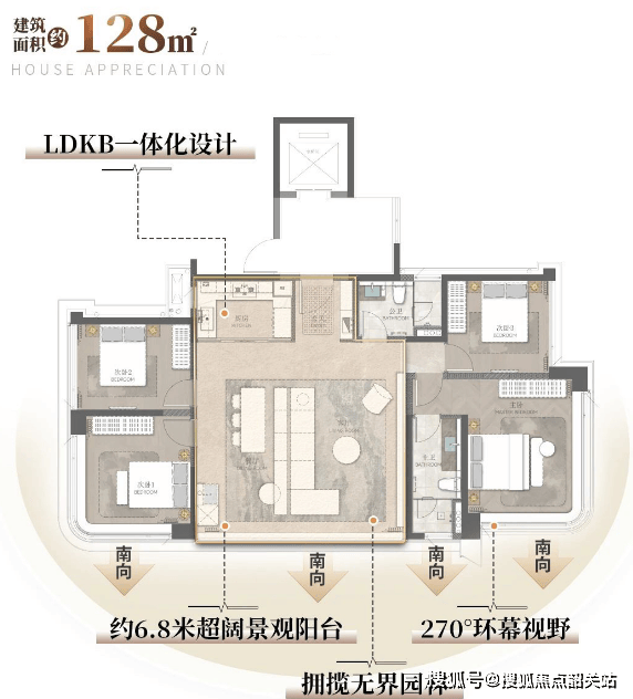 高端户型设计:采用面宽极大的板楼设计,部分户型拥有约16米L型阳台,270°环幕观江,前排约300米无遮挡。