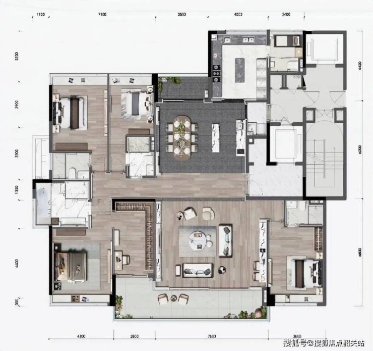 290㎡大平层户型通过空间分区优化,实现起居、休闲、办公及会客功能的有机融合,兼顾家庭生活与社交需求。每个细节均参考高端住宅设计理念,使空间功能性与美学高度统一,提供城市稀缺大平层居住体验。