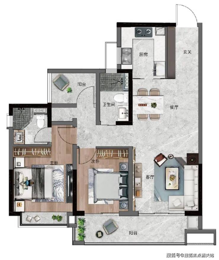 建面约102㎡舒适三房,享6.3米超大阳台,3.6米宽阔客厅
