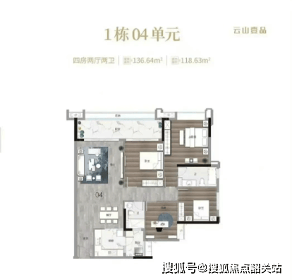 项目当前主要在售户型集中在136㎡和164㎡四房户型:
