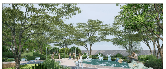 社区入口及景观打造:社区主入口设置林荫公园,搭配9米高天际界面门楼,仪式感十足;入口处设置仪式水景岛,区内打造林溪水院、景观山会客厅等景观节点,营造城居五重领域归家仪式感,让业主每次回家都能感受到尊贵与舒适。同时,社区整体采用抬高设计,打造森居精奢合院感立体社区,有效隔绝外界噪音和灰尘,提升社区的私密性和舒适度,同时优化景观视野,让业主推窗就能看到山体绿化和社区景观。