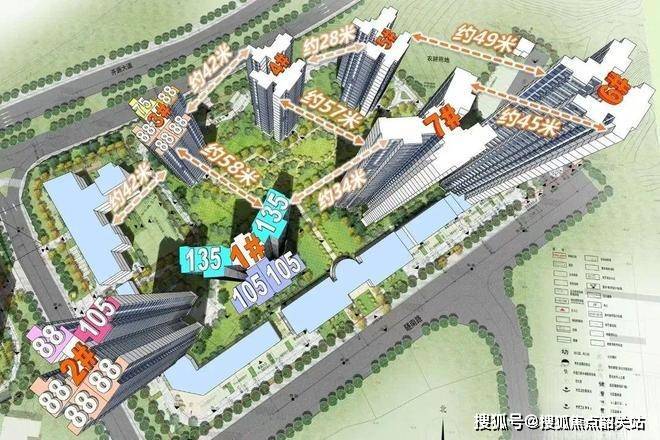 户型设计亮点十足。整个项目 7 栋商品住宅,前排 4 栋 32 - 33 层,后排 3 栋 16 - 17 层,3 - 4 - 5 - 6 栋为 2 梯 5 户,1 - 7 两栋为楼王,2 梯 4 户。前后两排布局优势明显,散点式排布提高单边位采光和视距,增加单边位货量;前后平行排布形成通透式中心园林,拉大楼栋间距。