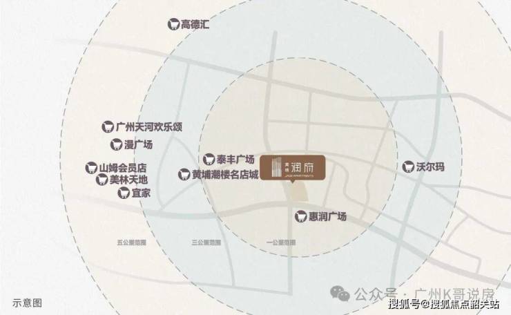 北面一路之隔是原黄埔区政府,直线约600米到保利中央公馆、黄埔体育馆;东面是万科城市之光,它就是位于惠润广场正对面的新溪旧改。