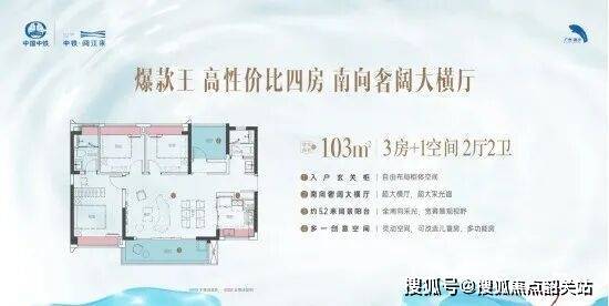 接下来是备受追捧的一百零三平方米“爆款王”户型,主打南向奢阔大横厅设计。这一户型在片区内同等面积段中,额外增加了一个房间,使得空间布局更加合理。约五点二米的超大阳台采光面,让室内光线充足,通风良好。横厅设计不仅提升了空间的通透感,还为家庭成员提供了更多的互动空间。此外,该户型的拓展空间更大,实用率更高,能够满足三代同堂家庭的居住需求。全新推出的一百零三平方米横厅户型,更是将超六米阔景阳台作为亮点,动静分区设计,私密主卧套房,进一步提升了居住的舒适度和私密性。