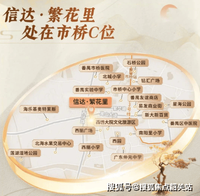 立足番禺发展核心,执掌城市价值高地。信达·繁花里择址市桥老城核心区位,占据城市中轴关键节点,周边汇聚番禺区政府、海关、税务局等核心政务资源,是番禺政务、文化、生活的核心交汇腹地,地段含金量经过多年城市发展沉淀,价值根基稳固,具备持久的资产保值与成长性。