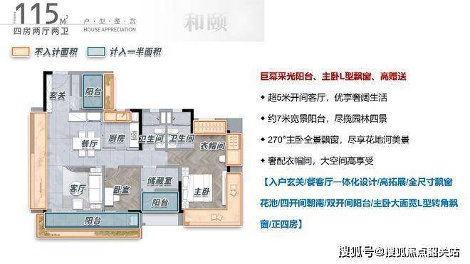 户型设计精巧实用,推出 115㎡、136㎡、142㎡等多种户型。115㎡户型多房朝南,厅出大阳台,空气对流和采光俱佳,800mL 型飘窗拓宽功能空间,收纳力强,还有灵活多功能空间,满足收纳达人需求。136㎡户型多房朝南且单边无遮挡,南北通透双阳台,保证采光与空气对流,主卧 270 度 L 型大飘窗拓展收纳空间,客厅开间约 5 米,双面宽观景阳台,窗外景观无遮挡。142㎡户型采用 2 梯 2 户 + 独梯入户设计,私密性强,厅出阳台直面花地河水景,双主卧大面积搭配 8.5m 宽景阳台,北阳台可望花地河水景,南飘窗可望园林,尽享江园双景,满足多种生活场景需求。