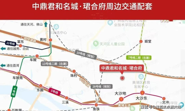 项目周边有5号线、7号线(二期在建)、13号线(二期在建)三轨交汇,一脉串联起珠江新城、金融城、鱼珠、琶洲等多个发展中心。