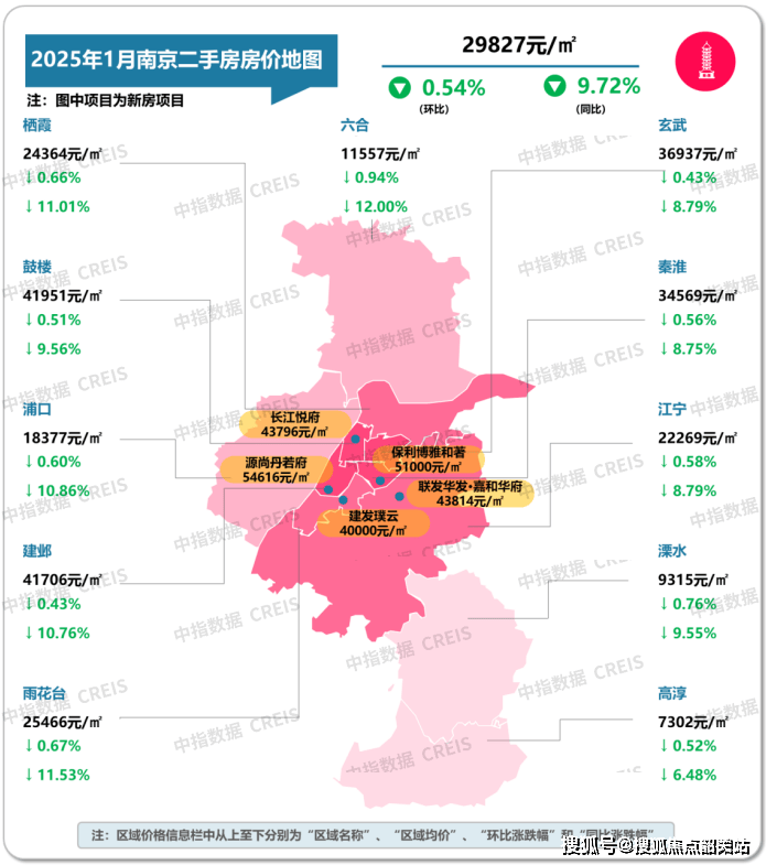 图:2025年1月南京各市辖区二手住宅挂牌均价及环同比数据来源:中指数据CREIS(点击查看)市场监测:https://www.cih-index.com