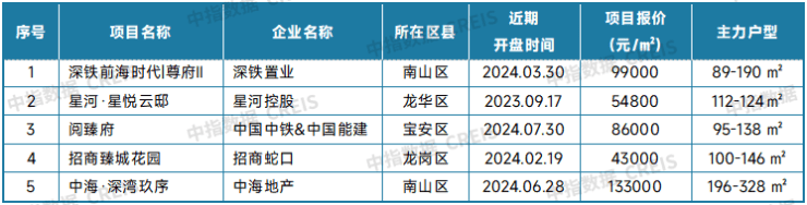 表:深圳新房典型项目数据来源:中指数据CREIS(点击查看)市场监测:https://www.cih-index.com
