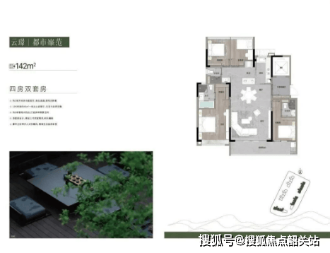 生态环境层面,一线白云山无遮挡山景,高浓度负氧离子环绕,内部一轴八苑低密园林,35%高绿化配比,内外双园构筑康养森居生活。