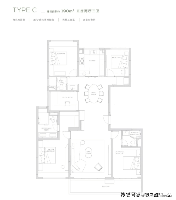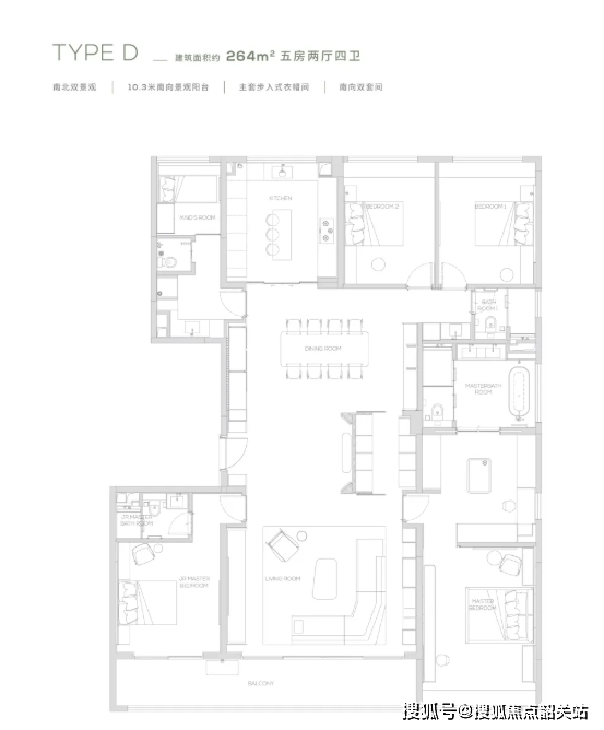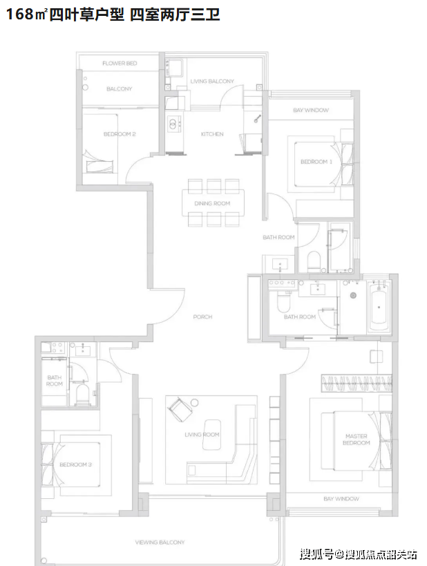 项目主打16-17层南北对流纯板式低密度小高层,所有楼栋均为专梯专户设计,确保居住的私密性和舒适度。主要在售户型为168平方米的四室两厅三卫“四叶草”户型。