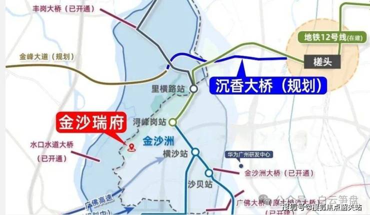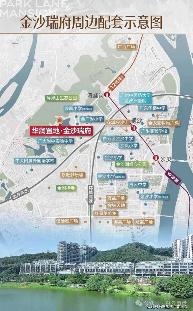 华润置地·金沙瑞府定位**广州主城芯低密奢居**,是金沙洲乃至白云区罕有的纯改善顶奢住区,项目择址白云金沙洲核心岛居板块,秉持“非城芯不选址,非稀缺不筑宅”的高端择址观,占据城市绝版自然资源与主城核心区位双重红利。从区域发展前景来看,金沙洲作为广州西部主城门户,承接荔湾、越秀老城区外溢高端居住需求,伴随华为研发中心落地、广佛大桥通车、沉香大桥规划推进,区域产业与交通格局全面升级,价值潜力持续攀升。
