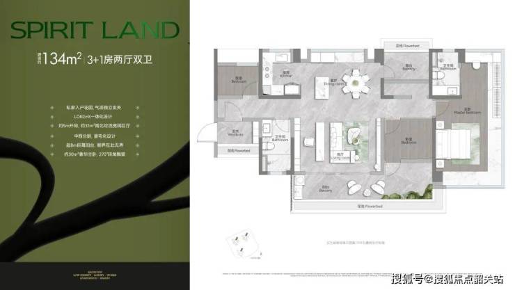 134㎡ 四房两厅两卫:入户花园+中西分厨+6人圆桌,8m大阳台,31㎡巨厅,独立衣帽间,居住舒适度极高。