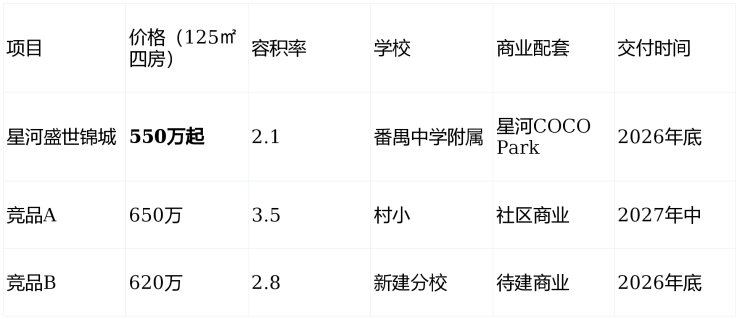 ✅价格:总价550万起买125㎡四房,单价仅4.4万/㎡(周边竞品均价5.2万/㎡);