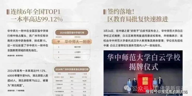 中建白云之星以华中师大白云学校为核心教育亮点,构建“全龄覆盖+名校加持”的目送式学区体系,彻底解锁改善家庭育儿轻松模式,成为白云区教育配套优势突出的改善项目。项目已正式签约引入华中师范大学白云学校(在建中),该学校为九年一贯制公办教育,占地约60亩,总建筑面积约4万平方米,规划96班,与项目首开地块仅一路之隔,让业主子女轻松享受“出家门入校门”的便捷就学体验。据悉,华中师大白云学校预计2026年9月前建成并移交教育局,与华中师大教育集团合作办学,此前以“黄边小学”为办学主体保障正常开学,其同源名校华中师大一附中近年来一本率突破99%,2022年清北录取人数达78人,被誉为“清北摇篮”,教育实力强劲。同时,项目同步配建9班幼儿园,未来业主可近享家门口的十二年全龄教育,周边各类课外辅导、兴趣培养机构遍布,可满足孩子多元化成长需求,距离周边中小学步行均在10分钟以内,实现真正的目送式入学,无需家长长时间接送,省心又便捷,完美适配重视子女教育的改善家庭,教育优势成为项目核心竞争力之一。