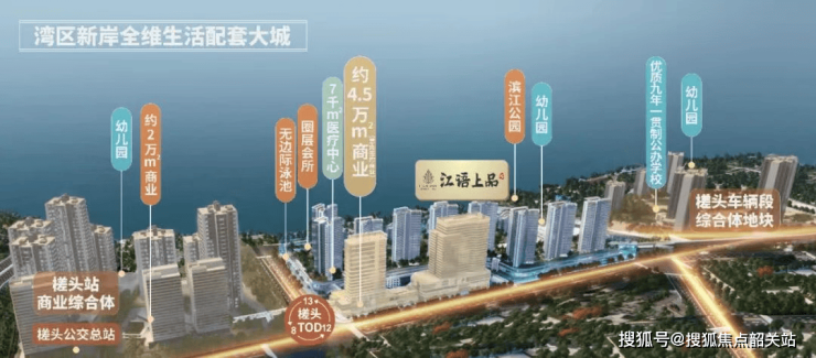 商业配套:项目依托150万方槎头TOD全配套大城,打造一站式繁华生活圈。作为槎头TOD二期项目,江语上品苑自身配建约4.5万㎡商业配套,包括约37000㎡集中式商业和约7000㎡风情临街商业,规划引入大型超市、品牌餐饮、休闲娱乐等多元化业态,满足业主日常购物、餐饮、休闲需求。同时,槎头TOD一期、三期合计规划约4万㎡商业,整体形成8万㎡高端商业集群,打造区域商业核心。