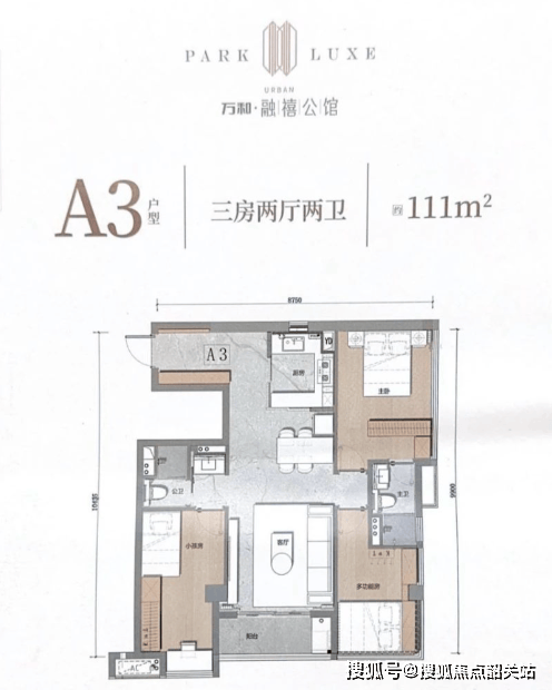 111㎡三房朝东/西向:室内布局为飞机户设计,整体较为流行,但也存在餐厅直冲公卫的问题。