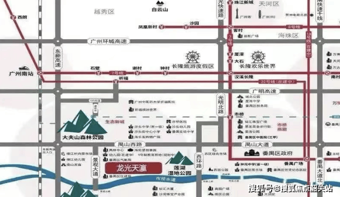 龙光・天瀛所在的番禺生态新城板块,虽非湾区创新政策的直接发源地,但深度承接广州 “南拓” 与湾区 “生态宜居” 战略,逐步成为 “生态 + 政务 + 居住” 融合发展的微型标杆。板块依托大夫山等生态资源,定位 “番禺生态宜居核心区”,同时紧邻番禺第二政务中心,周边 2 公里内聚集 15 大政府机构(如番禺区气象局、住建局、水务局等),形成 “政务服务 + 生态居住” 的独特发展模式,既满足城市政务功能需求,又为居民提供优质居住环境,契合湾区 “产城融合、职住平衡” 的发展理念。