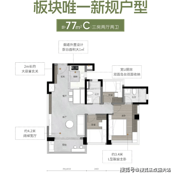 在售户型品鉴:77–135㎡高得房率,小面积实现大功能